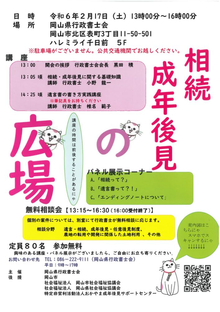 TOP/新着情報/お知らせ/行政書士記念日事業 相続成年後見の広場 令和6年2月17日土曜日